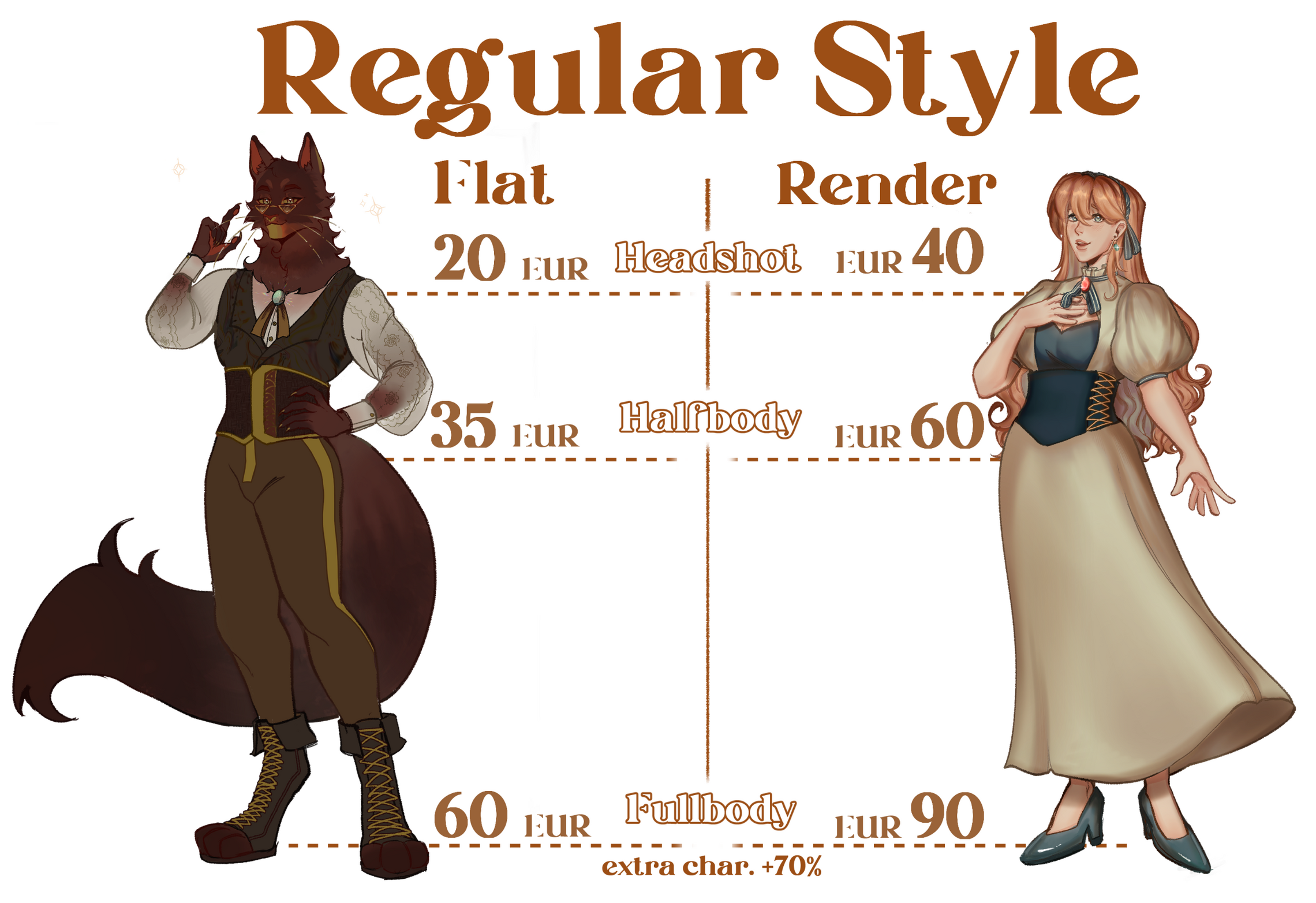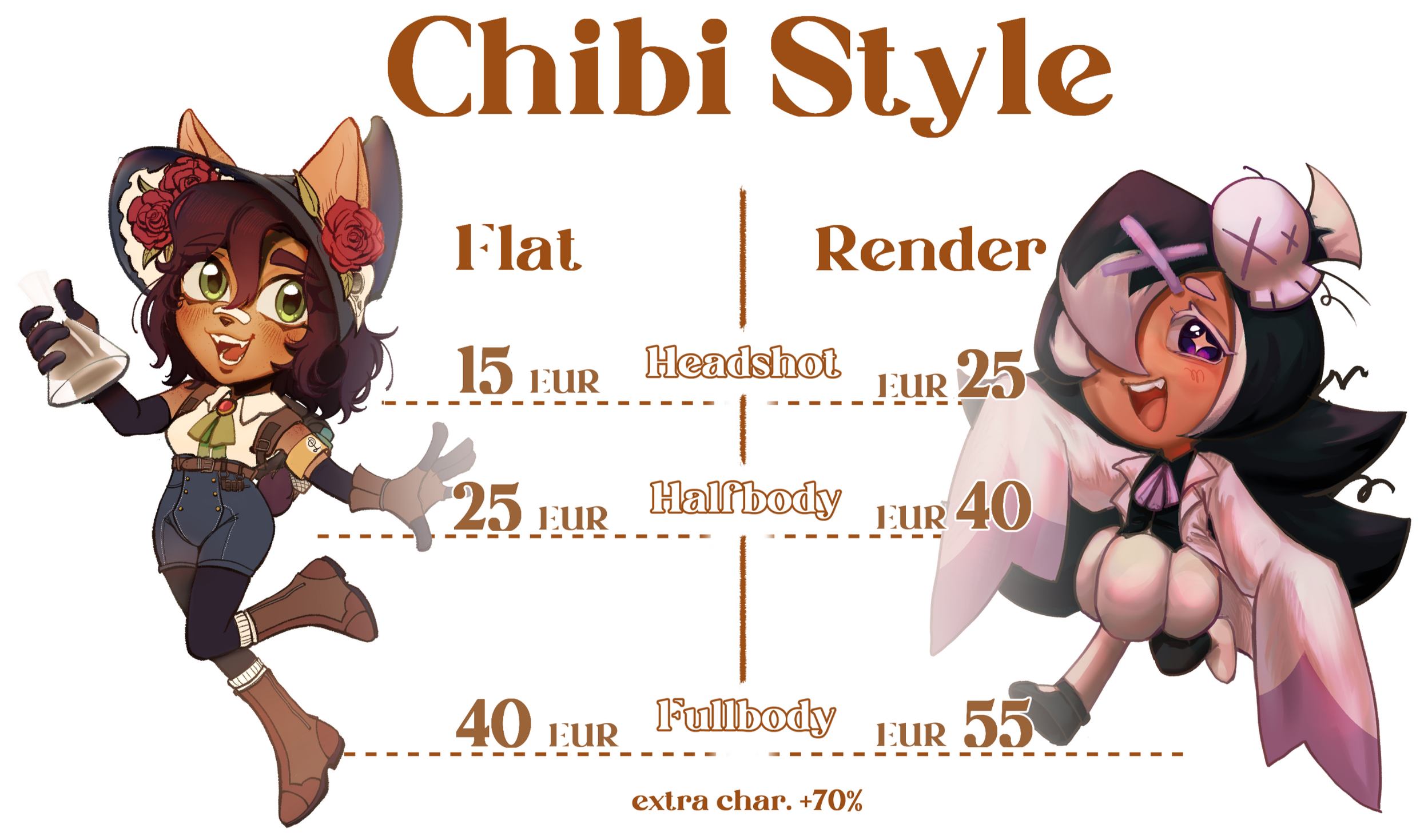 Extra character add a +70% of the price